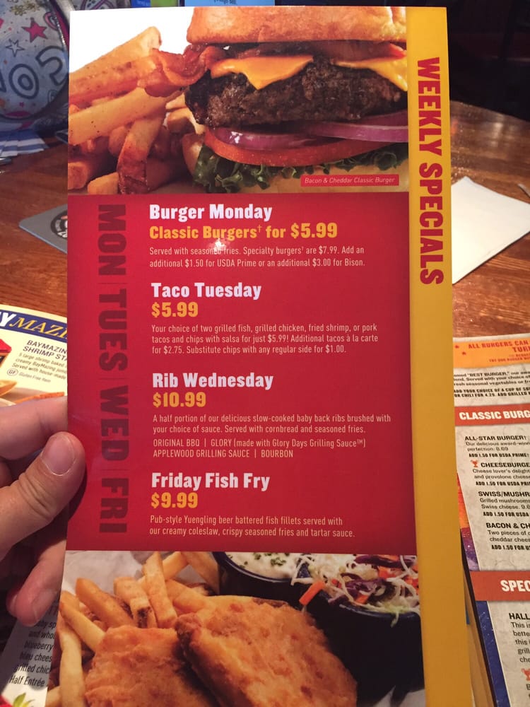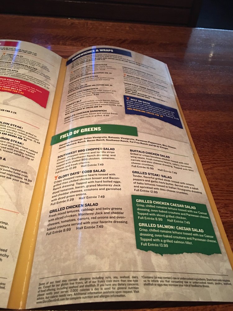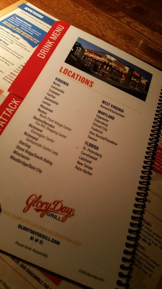 "Introducing the menu at Glory Days Grill, located at 9459 Lorton Market St in Lorton, VA. This sports bar offers a variety of American dishes with a focus on chicken wings. The restaurant provides delivery and takeout services, accepts credit cards and Apple Pay, and has outdoor seating available. With a casual atmosphere and moderate noise level, Glory Days Grill is family-friendly and perfect for lunch or dinner. They also offer catering services and have ample parking. The best nights to visit are Thursday, Friday, and Saturday, where you can enjoy a full bar, TVs, dancing, and even a pool table. Bring your furry friends along as dogs are allowed, and there is bike parking for your convenience. Overall, Glory Days Grill is a great spot for a fun and delicious dining experience."